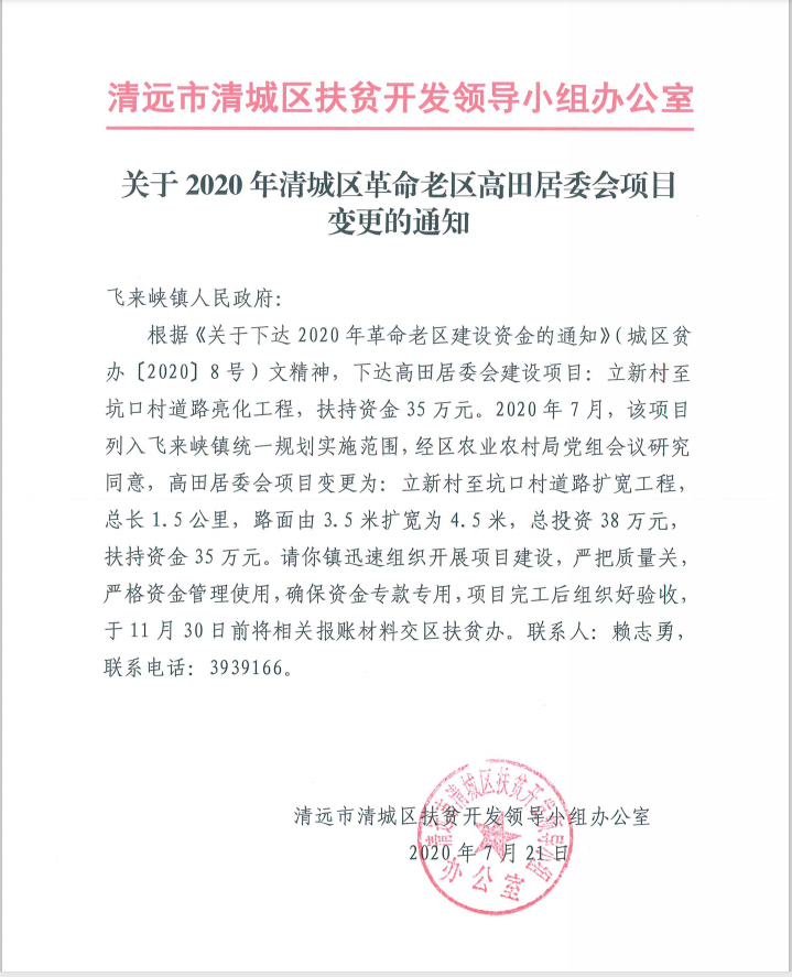 關于2020年清城區(qū)革命老區(qū)高田居委會項目變更的通知