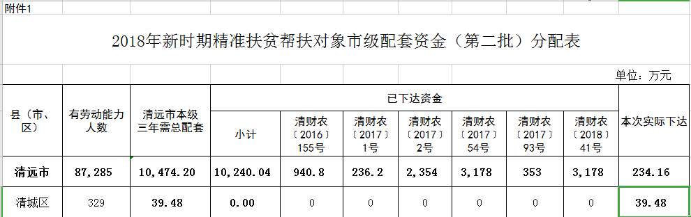 根據清財農【2018】83號文,清遠市下達我區2018年精準扶貧資金39.48萬元,現將資金公示如下: