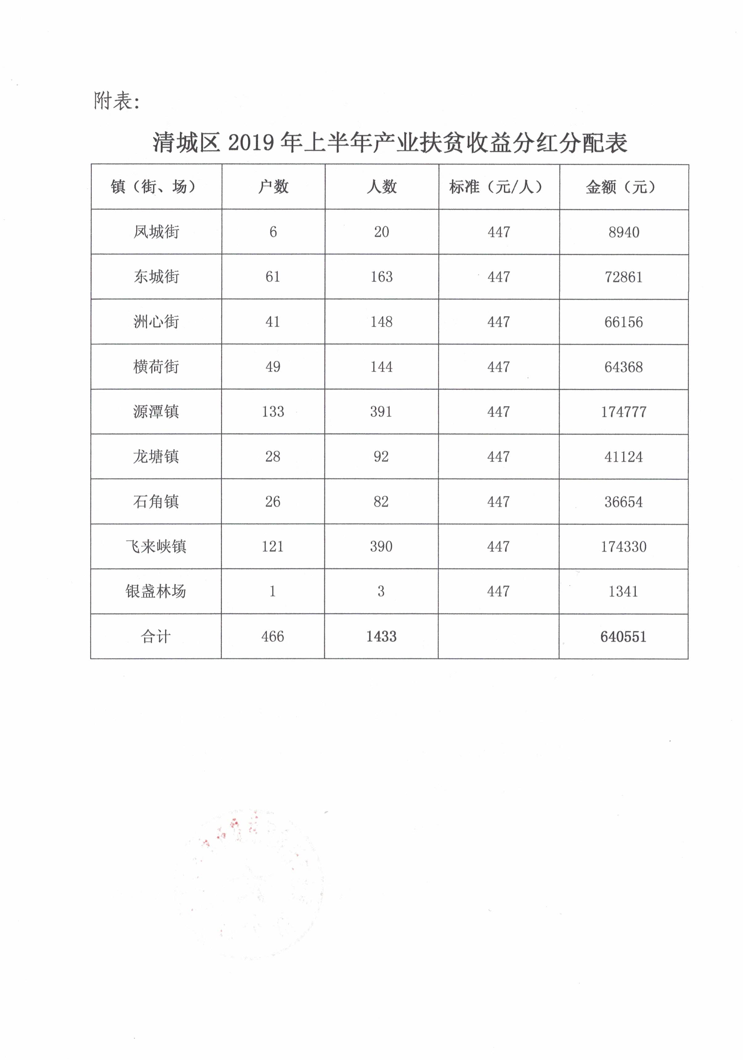 關于下達清城區2019年上半年產業扶貧資金收益分紅的通知