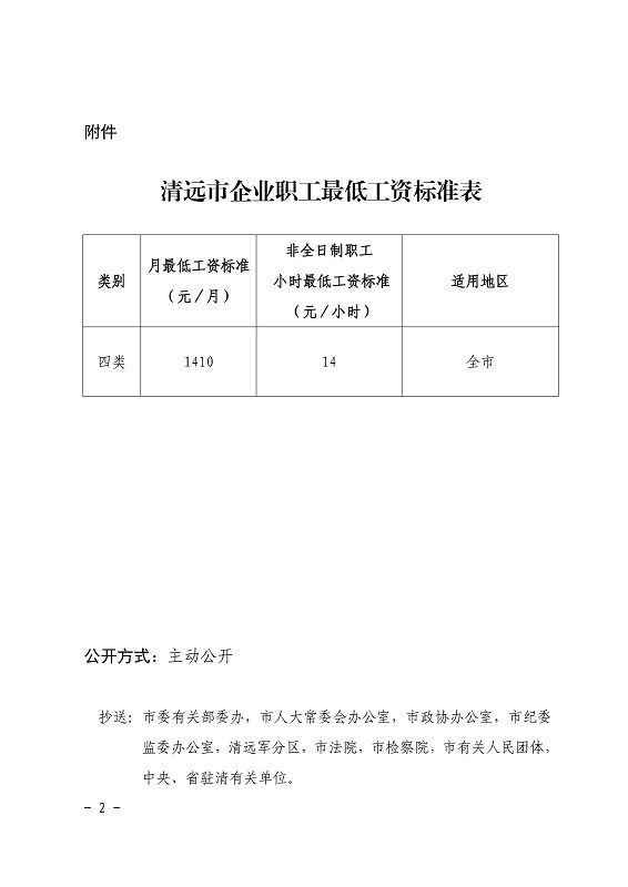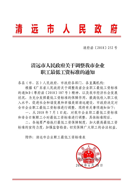 清遠市人民政府關于調整我市企業職工最低工資標準的通知