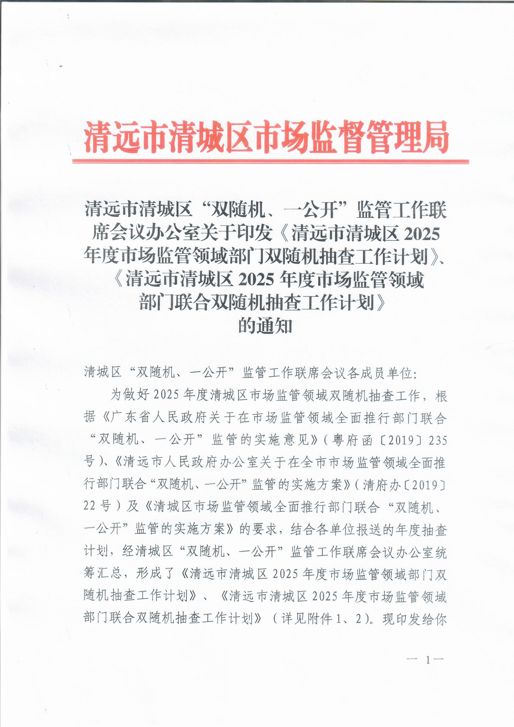 附件1:清遠(yuǎn)市清城區(qū)2025年度市場監(jiān)管領(lǐng)域部門雙隨機抽查工作計劃.xlsx