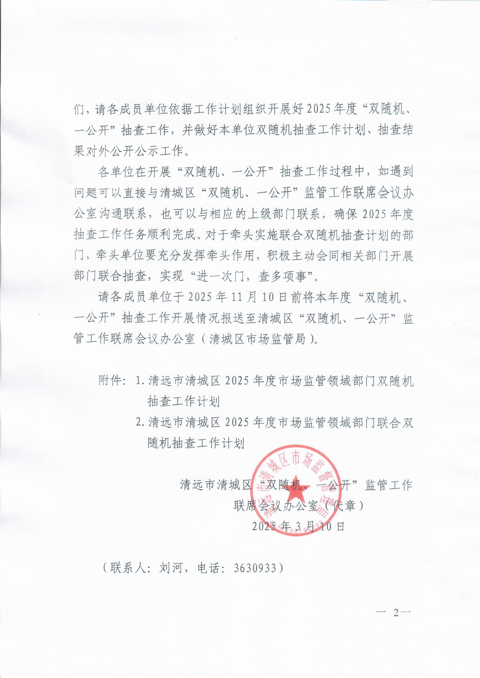 附件2:清遠(yuǎn)市清城區(qū)2025年度市場監(jiān)管領(lǐng)域部門聯(lián)合雙隨機抽查工作計劃.xlsx