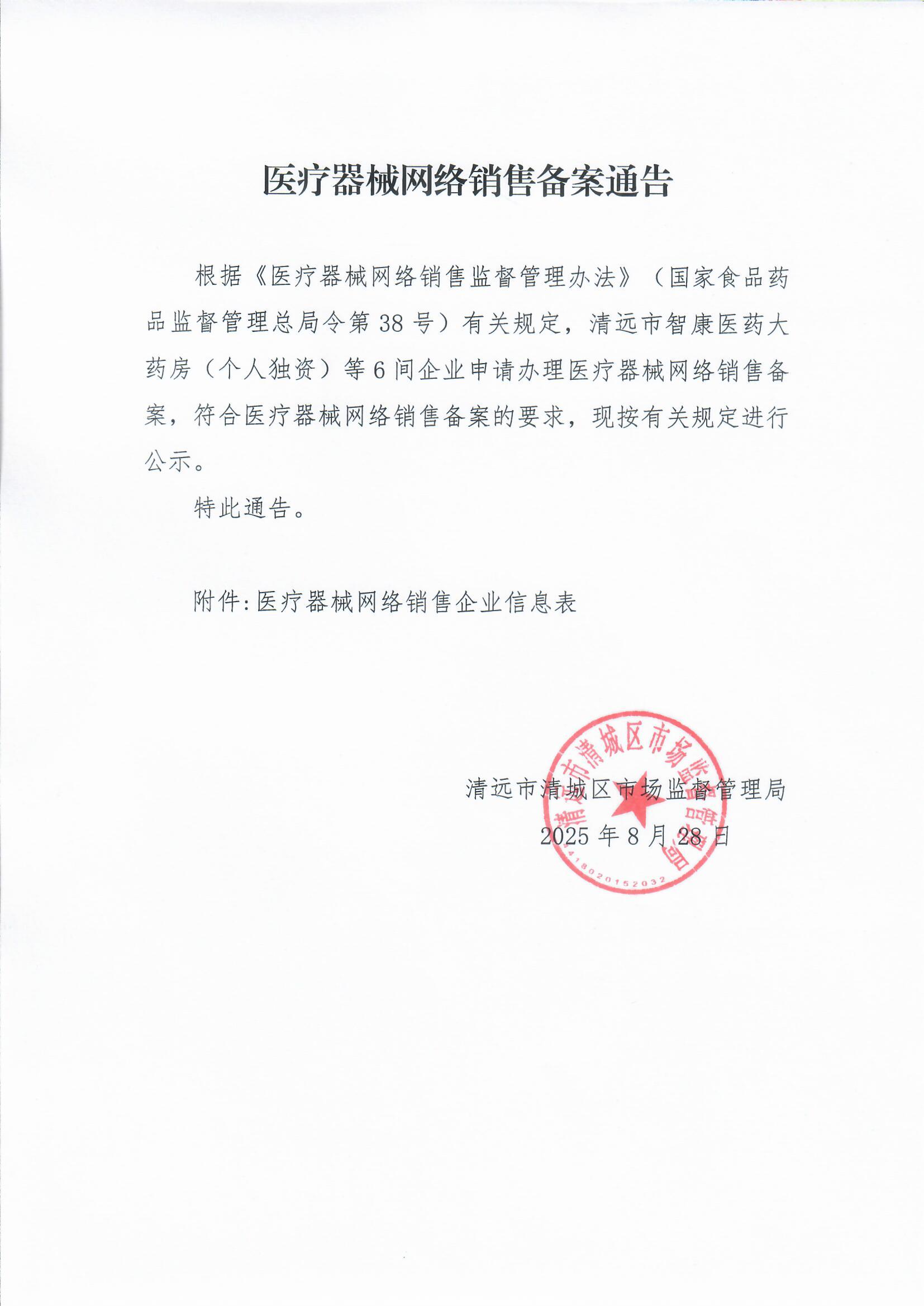 1 | 首次備案 | (清城)網(wǎng)械銷售備字 ﹝2025﹞第31號(hào) | 2025/8/20 | 清遠(yuǎn)市智康醫(yī)藥大藥房(個(gè)人獨(dú)資) | 入駐類 | 91441802MAEJP00A8Y | 清遠(yuǎn)市清城區(qū)附城大道33號(hào)東城御峰花園十六座首層商鋪05號(hào) | ****** | 京東到家;餓了么;美團(tuán)網(wǎng) | (滬)網(wǎng)械平臺(tái)備字[2018]第00002號(hào);(滬)網(wǎng)械平臺(tái)備字[2018]第00004號(hào);(京)網(wǎng)平臺(tái)備字(2018)第00004號(hào) | 無 | 無 | 無 | 無 | 無 | 無 |
