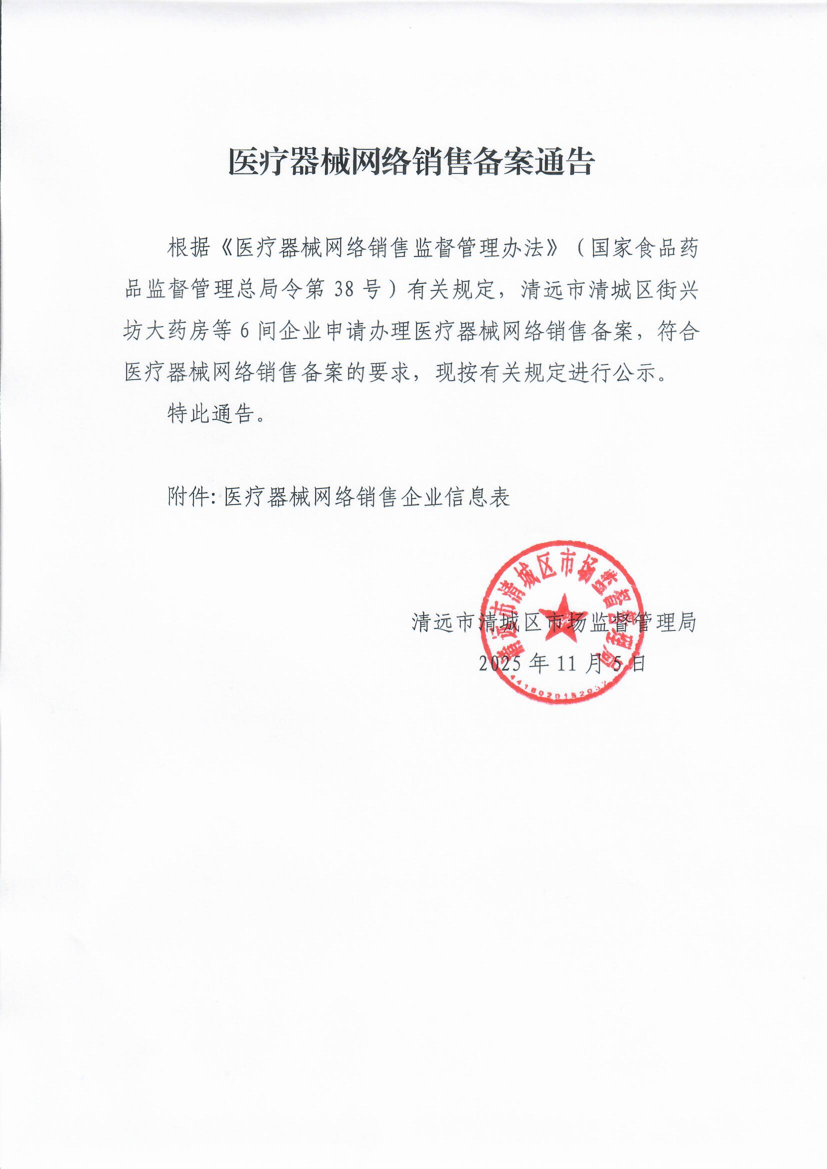 4 | 首次備案 | (清城)網(wǎng)械銷售備字 ﹝2025﹞第43號(hào) | 2025/10/30 | 清遠(yuǎn)市清城區(qū)街興坊大藥房廣泰店 | 入駐類 | 91441802MA55HNKW5B | 清遠(yuǎn)市新城東四號(hào)區(qū)4-38之7首層101號(hào) | ****** | 餓了么;美團(tuán)網(wǎng) | (滬)網(wǎng)械平臺(tái)備字[2018]第00004號(hào);(京)網(wǎng)械平臺(tái)備字(2018)第00004號(hào) | 無(wú) | 無(wú) | 無(wú) | 無(wú) | 無(wú) | 無(wú) |
