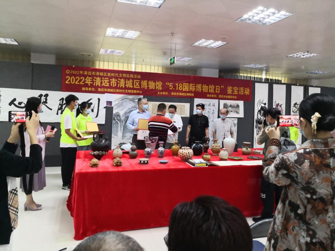 5月15日,清城區博物館在清城文化藝術中心大樓一樓展廳舉辦鑒寶活動。本次活動得到清遠市收藏家協會的大力支持,現場共展示收藏家的書畫、陶瓷、玉石、票證、地圖、銅器等藏品100多件。區博物館館長為4名文物鑒定專家頒發顧問聘書,文物鑒定專家對100多件藏品進行鑒定,20多名收藏愛好者進行收藏交流。