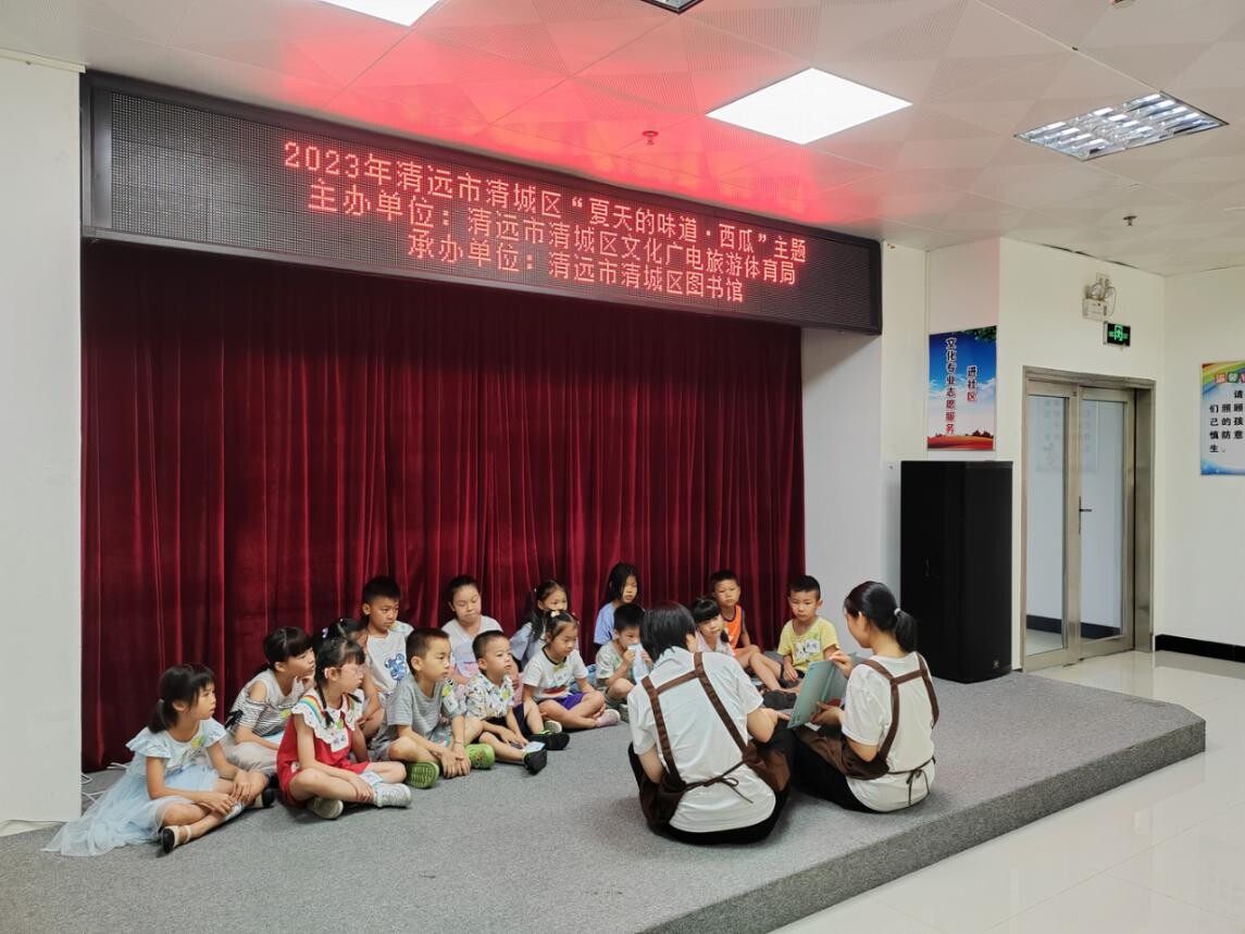 通過老師講解繪本,小朋友圍圓坐,讓小朋友們一起沉浸在《西瓜游泳場》繪本故事里。