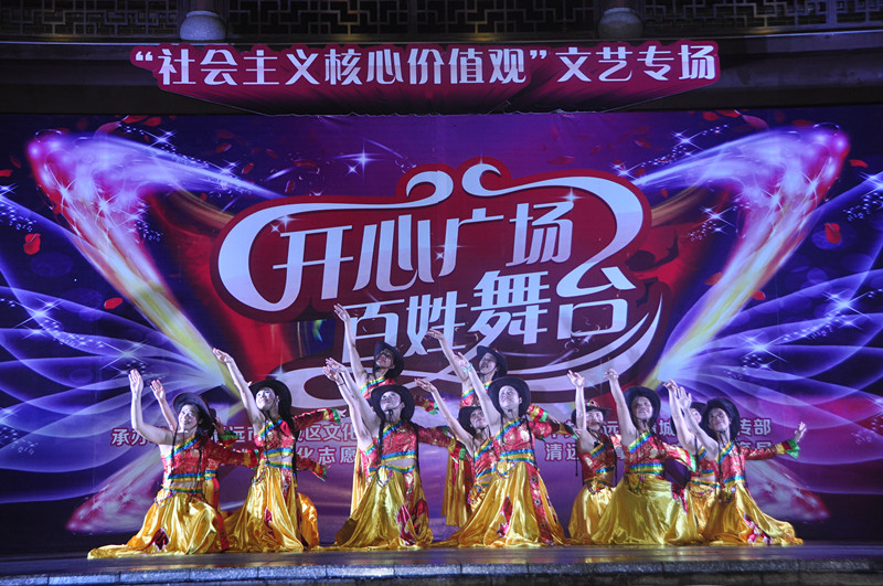 為更好的宣傳社會主義核心價值觀,推進文化惠民工程的開展,進一步豐富廣大群眾的文化生活,區文化體育局和區文化館結合創文創衛要求,于2016年6月24日起聯合主辦了主題為“文化惠民·共建舞臺”的“開心廣場·百姓舞臺”系列文化惠民演出活動。