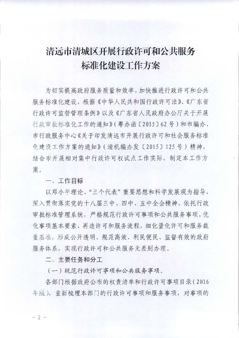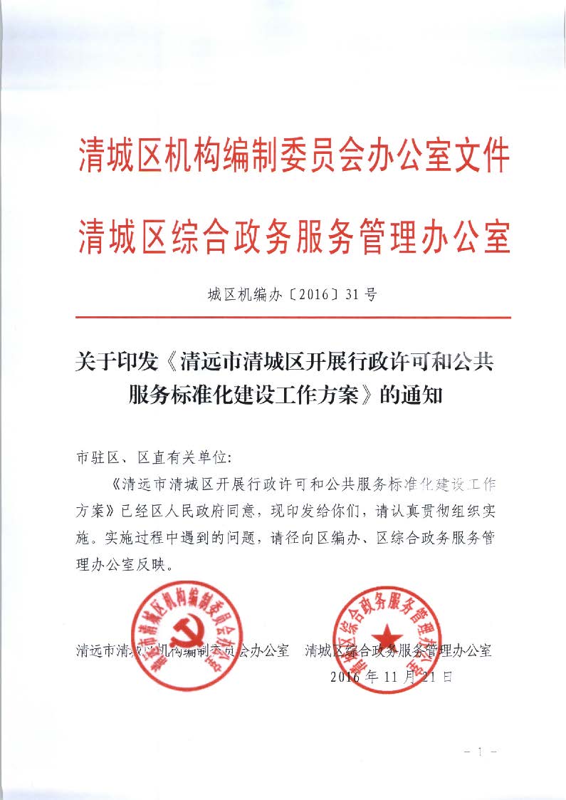 關于印發《清遠市清城區開展行政許可和公共服務標準化建設工作方案》的通知