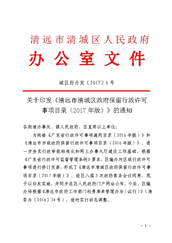 附件-清遠(yuǎn)市清城區(qū)政府保留行政許可事項(xiàng)目錄(2017年版).xls