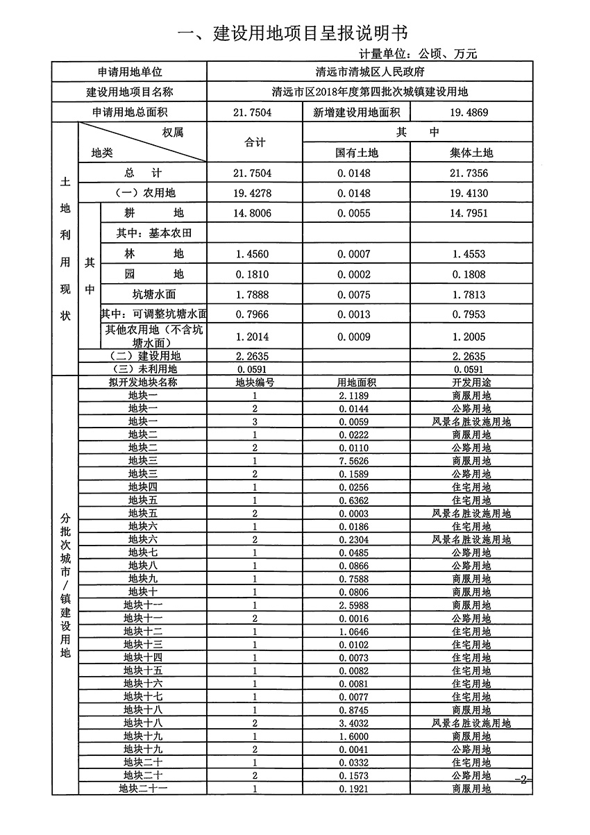 清遠市區2018年度第四批次城鎮建設用地一書三方案
