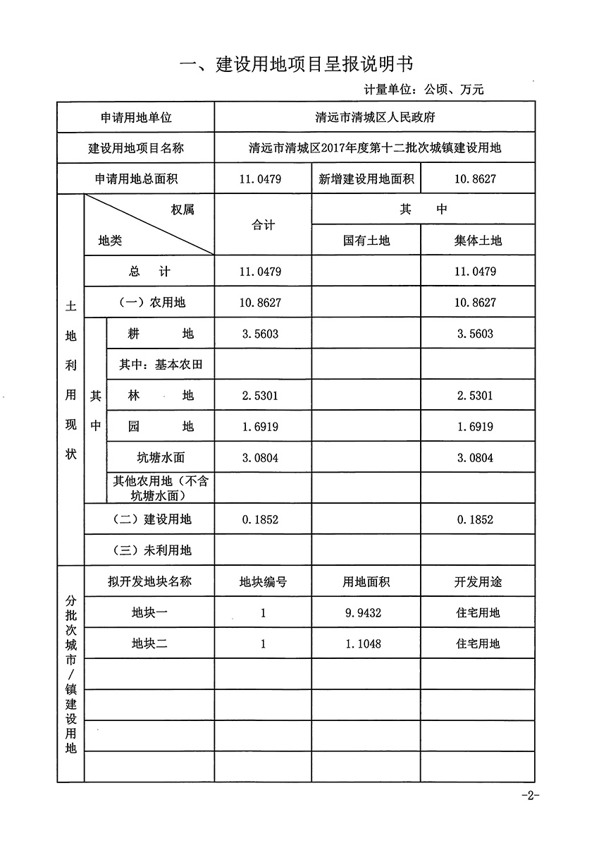 清城區2017年度第十二批次城鎮建設用地一書三方案
