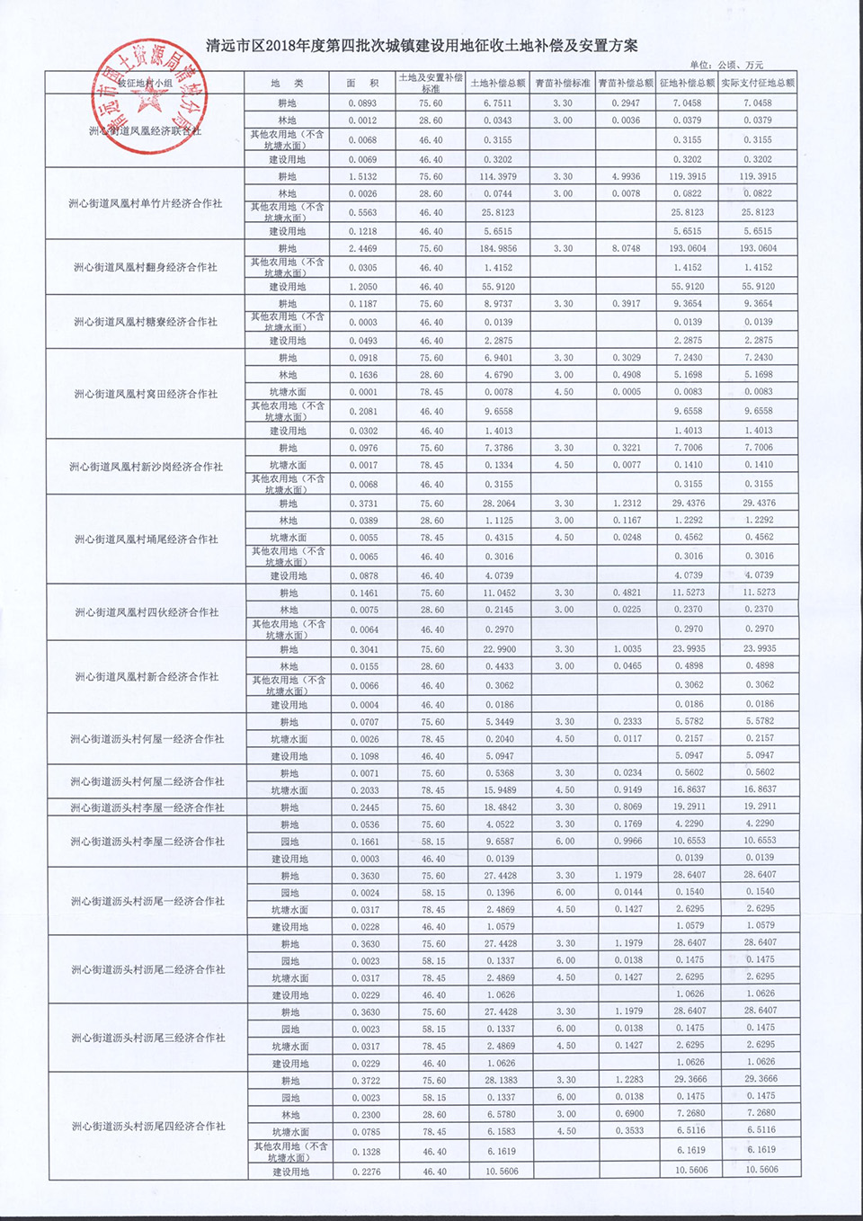 清遠市區2018年度第四批次城鎮建設用地征地補償安置方案