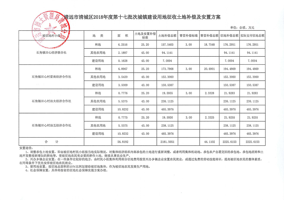 清遠市清城區2018年度第十七批次征地補償安置方案