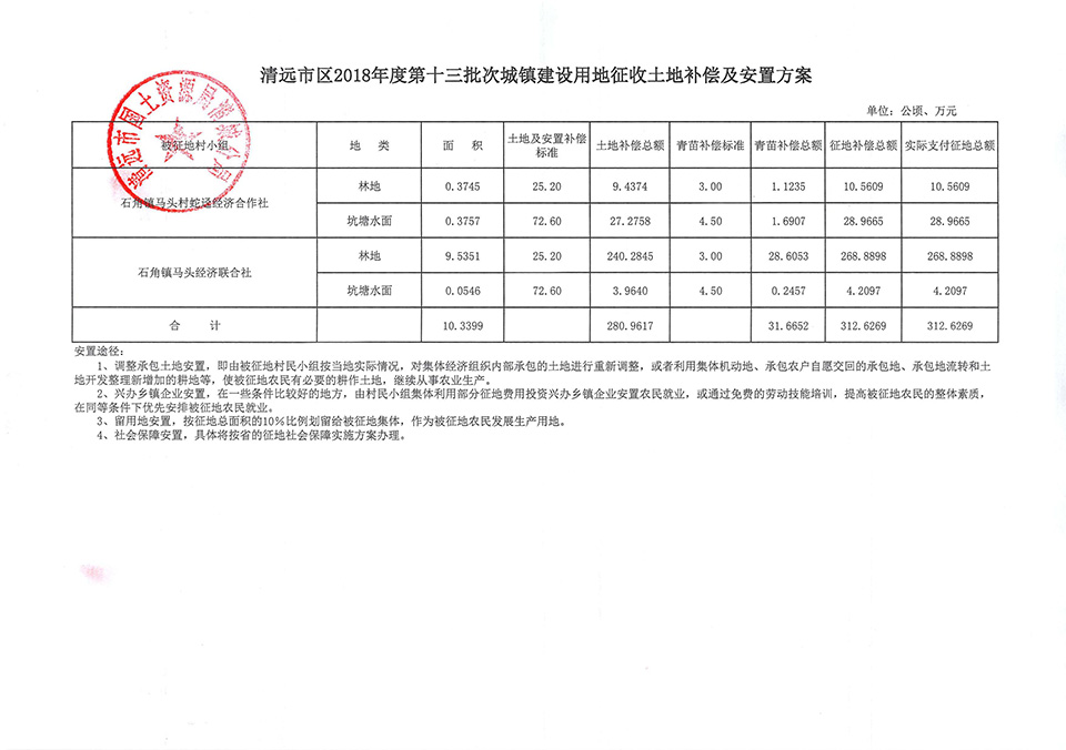 清遠市區(qū)2018年度第十三批次征地補償安置方案