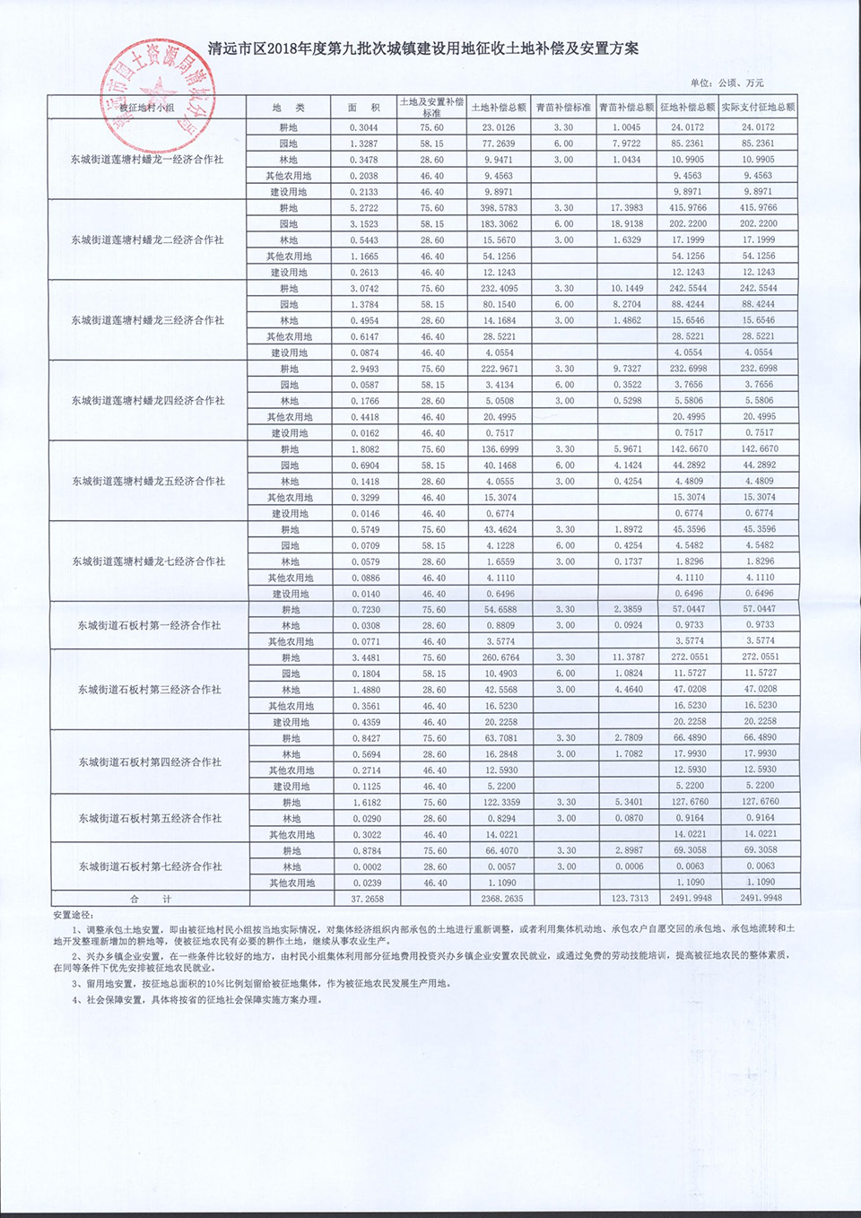 清遠市區(qū)2018年度第九批次征地補償安置方案