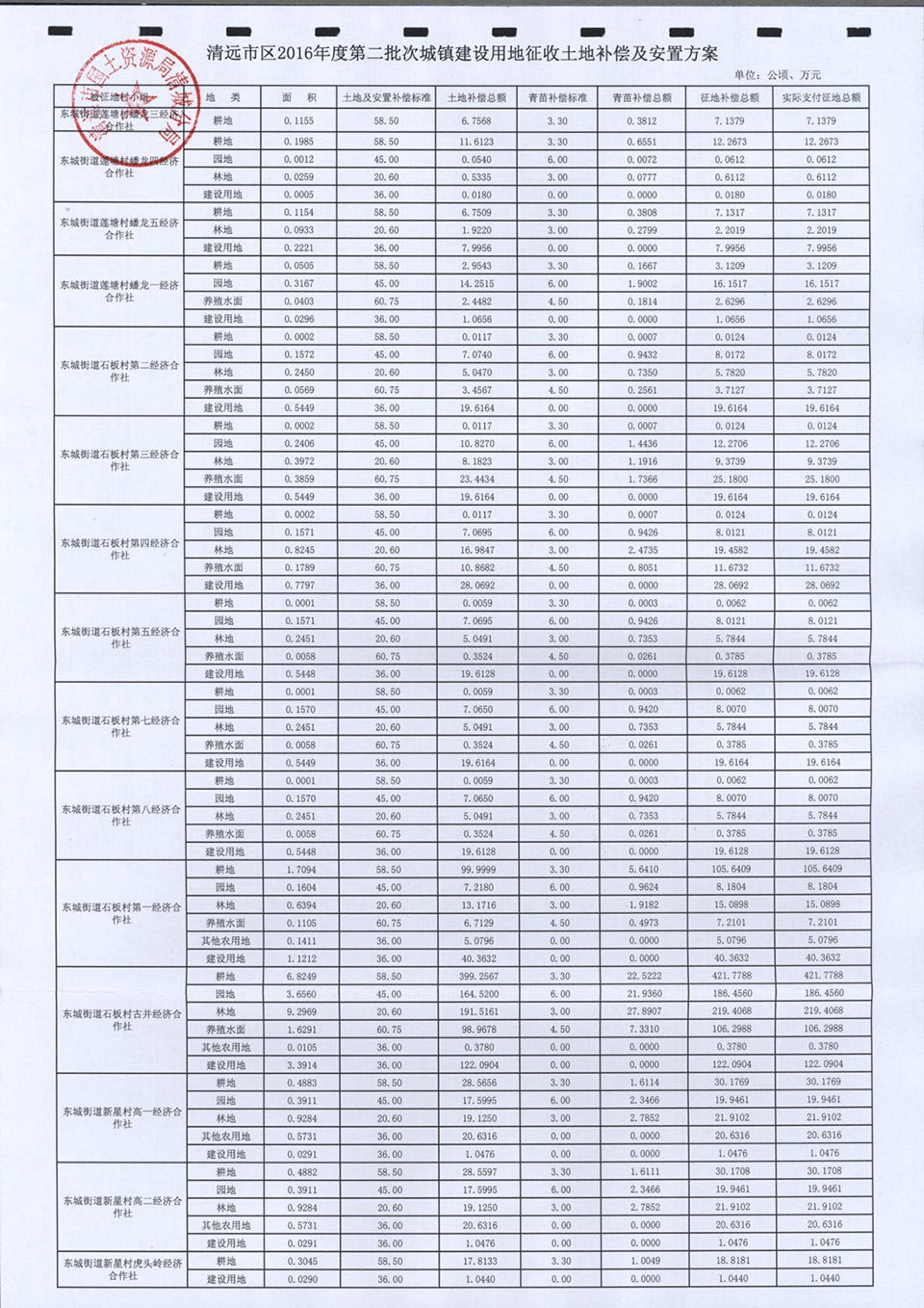 清遠(yuǎn)市區(qū)2016年第二批次征地補(bǔ)償安置方案