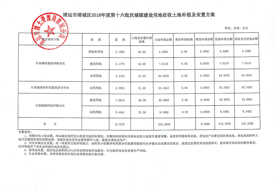 清遠市清城區2018年度第十六批次征地補償安置方案