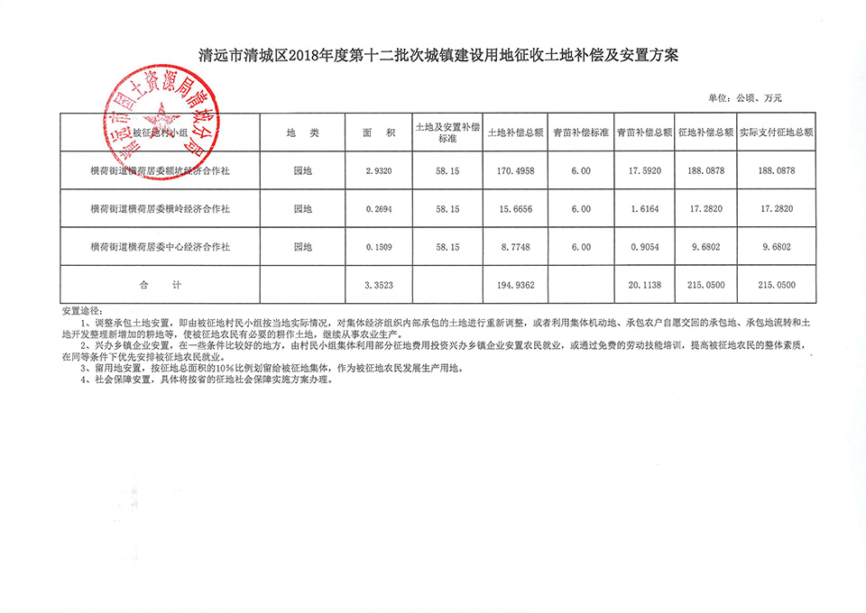清遠市清城區2018年度第十二批次征地補償安置方案