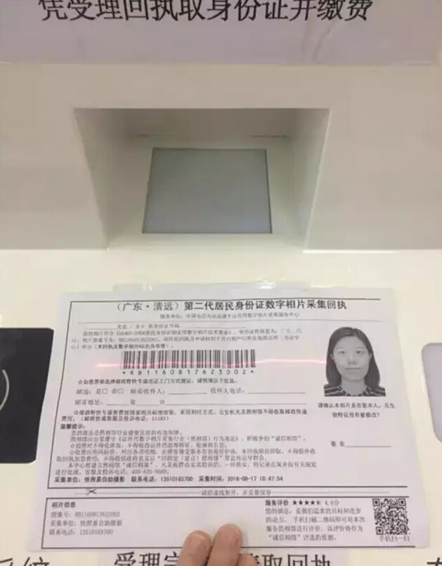 8、兩個月后,帶上《居民身份證領取憑證》到清城區公安分局二樓戶政大廳繳納身份證工本費及領取新證。(提醒:換領證件需帶回舊證)