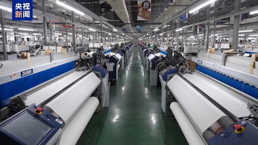 在一家紡織面料加工工廠里,一排排防曬專用紗線正源源不斷地被送上織布機,經過密織、高溫定型等流程,被加工成具備高倍防曬性能的科技面料。據企業負責人介紹,他們從2019年開始,對全產線進行了數字智能化升級。